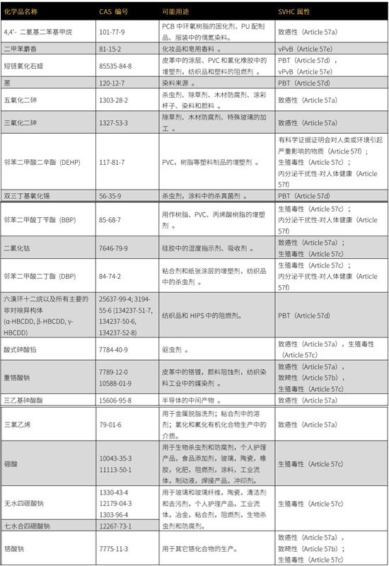 因為這些物質可能是致癌物質、致畸變物質和生殖毒性物質(CMR);或是持久、生物累積、有毒物質(PBT);或是強持久強生物累積物質(vPvB);又或者有實際案例證明這類物質對人類及環境有嚴重危害影響。例如我們熟悉的:鎘、鉛、雙酚A、硝基苯、三氧化二砷(俗稱“砒霜”)等等。