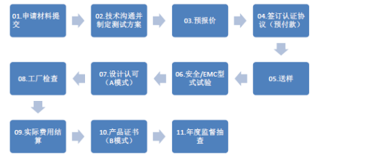 B模式:型式試驗(yàn)+工廠檢查+獲證后監(jiān)督(證書適用于同型號(hào)出廠的產(chǎn)品),證書有效期5年。
