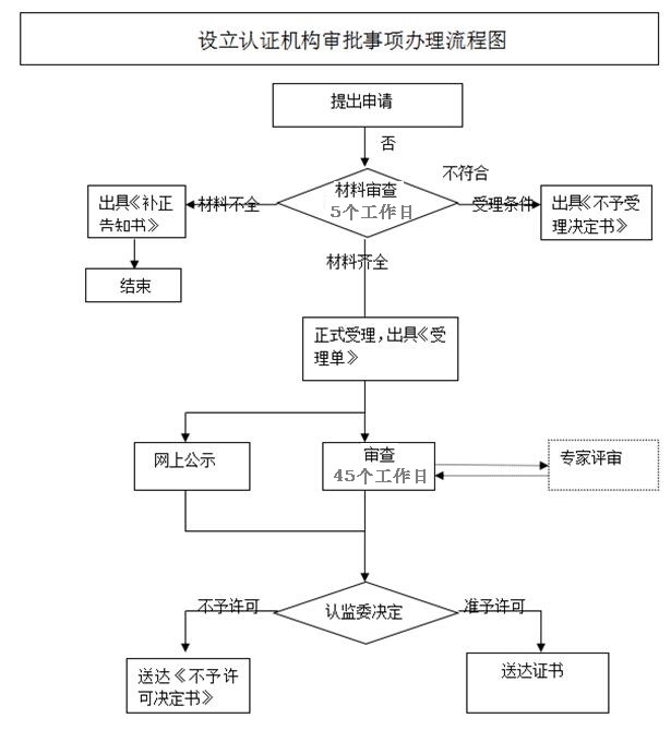 設(shè)立認(rèn)證機(jī)構(gòu)從受理時(shí)間算起,需要45個(gè)工作日。
